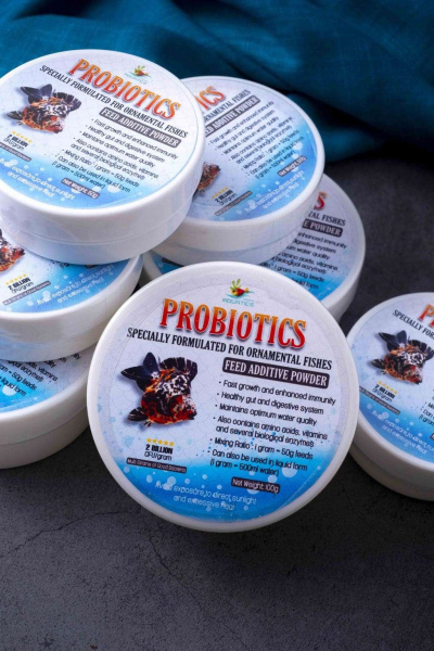• One gram of probiotics powder = 50g of fish pellets (Adjust as necessary)